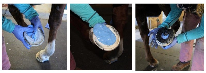 Le mastic de silicone est formulé spécifiquement pour des applications industrielles où l'absorption des chocs et l'appui sont nécessaires. Deux formulations sont disponibles : Appui et superbe-coussin fermes. Ces systèmes de deux-composant sont activés en mélangeant les pièces égales ensemble jusqu'à une couleur uniforme est réalisés à quel point le sabot est emballé et une pleine protection est appliquée. Le plein poids du cheval est appliqué pour un ajustement fait sur commande et le matériel excédentaire est équilibré loin. Les avantages incluent : soutien orthopédique de l'os de cercueil ; circulation du sang accrue ; se conforme au sabot au mouvement du cheval ; ne se rétrécit pas et ne reste pas résilient durant toute la vie de l'application.