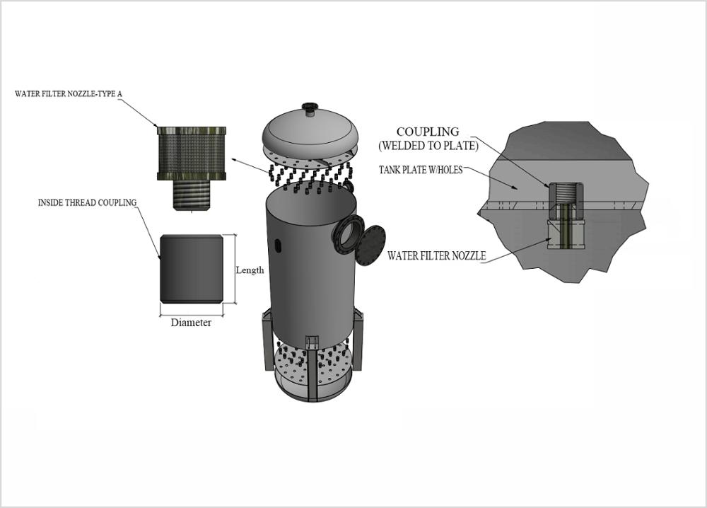 Les becs de filtre pour écran d'ordinateur de fil de cale sont les composants importants des unités d'échange ionique, filtres de sable, navires de bande de carbone, tours de carbone, filtres d'argile, filtres de médias, et beaucoup d'autres applications de traitement de l'eau et des eaux usées, qui ont les rangées multiples des parties latérales de hub ou d'en-tête d'écran de fil de cale.