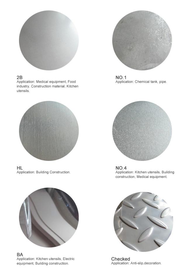| 2B | Ceux-ci sont finis, après laminage à froid, par traitement thermique, décapage ou autre traitement équivalent et enfin par laminage à froid pour leur donner un lustre approprié. | Équipement médical, industrie alimentaire, matériaux de construction, ustensiles de cuisine, etc. |