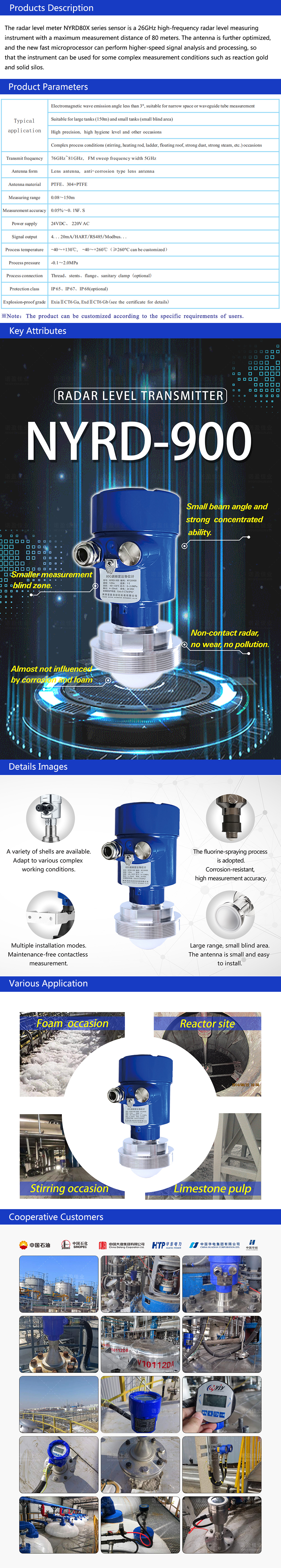 1. Chine Mètre de niveau de radar à haute fréquence de PTFE 26ghz pour le léger liquide corrosif à vendre